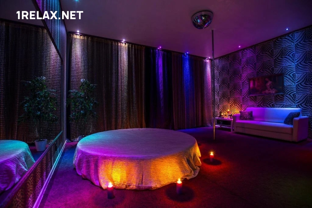 В заведении есть зона ресепшен. Там можно познакомиться с программами и мастерами, выбрать алкогольный напиток, узнать о многочисленных акциях и бонусах. Администратор проследит, чтобы отдых был конфиденциальным.